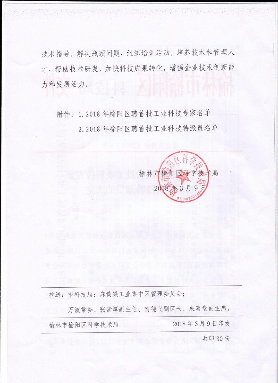 關于聘請榆陽區首批工業科技專家及工業科技特派員