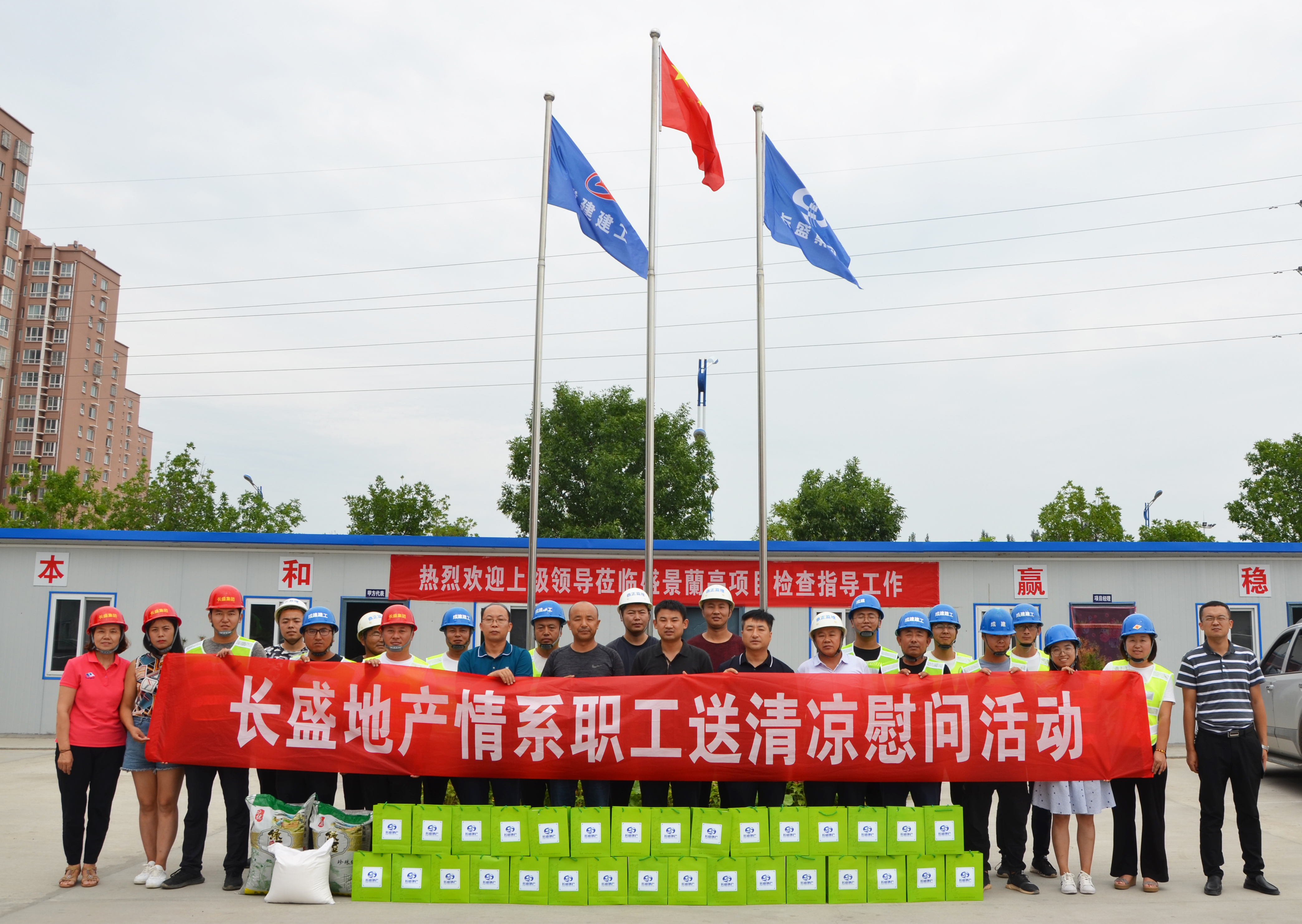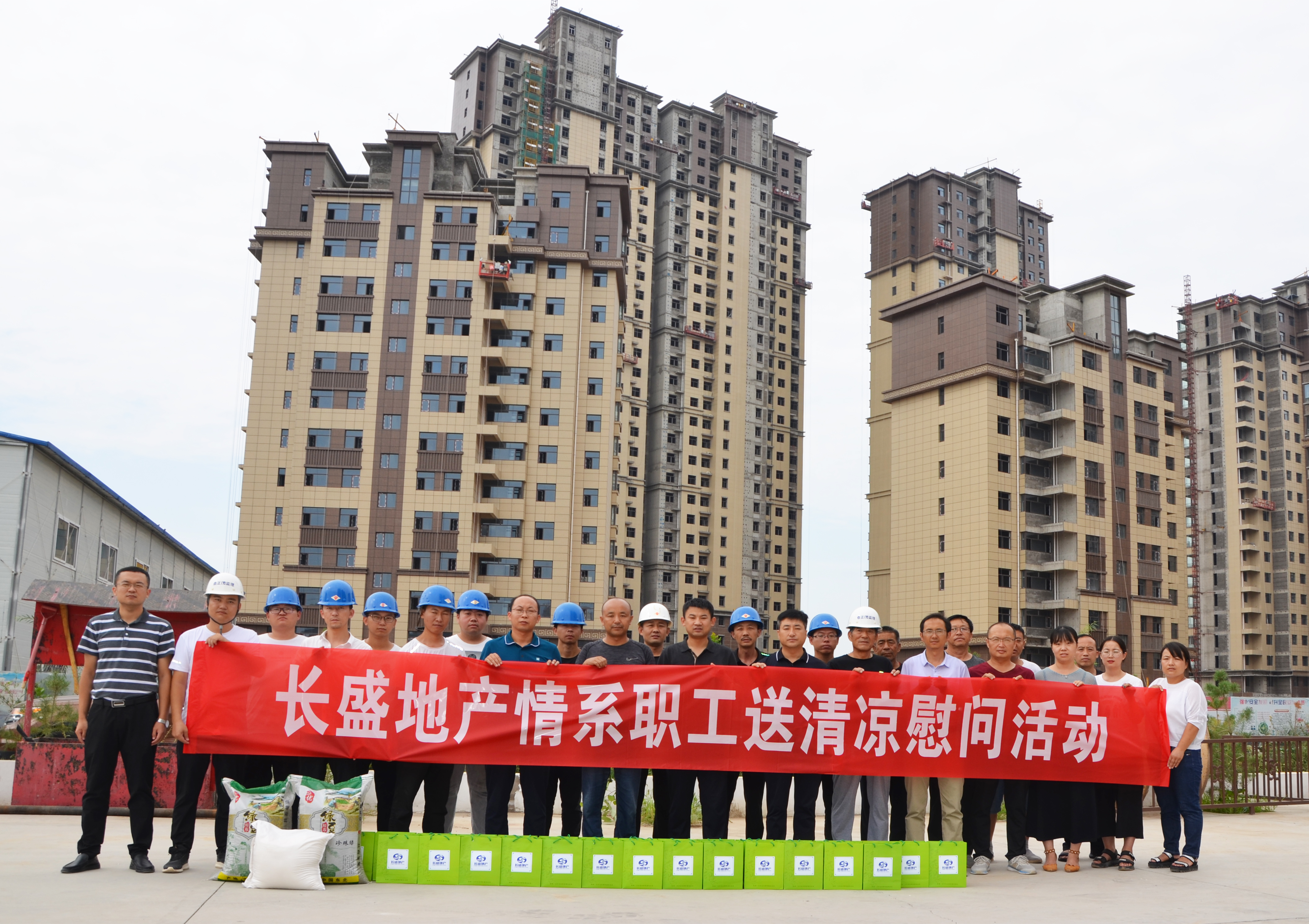 立秋未入秋,高溫仍持續。8月11日,長盛地產公司總經理徐遼飛、副總經理劉世斌、總工程師曹光軍及相關部門負責人一行走進公司盛景蘭亭項目部、流水馨城項目部和盛翔華庭項目部,開展“情系職工送清涼”慰問活動,為一線職工送上了親切的問候和防暑降溫物品,也為這個高溫伏天帶來了絲絲清涼。