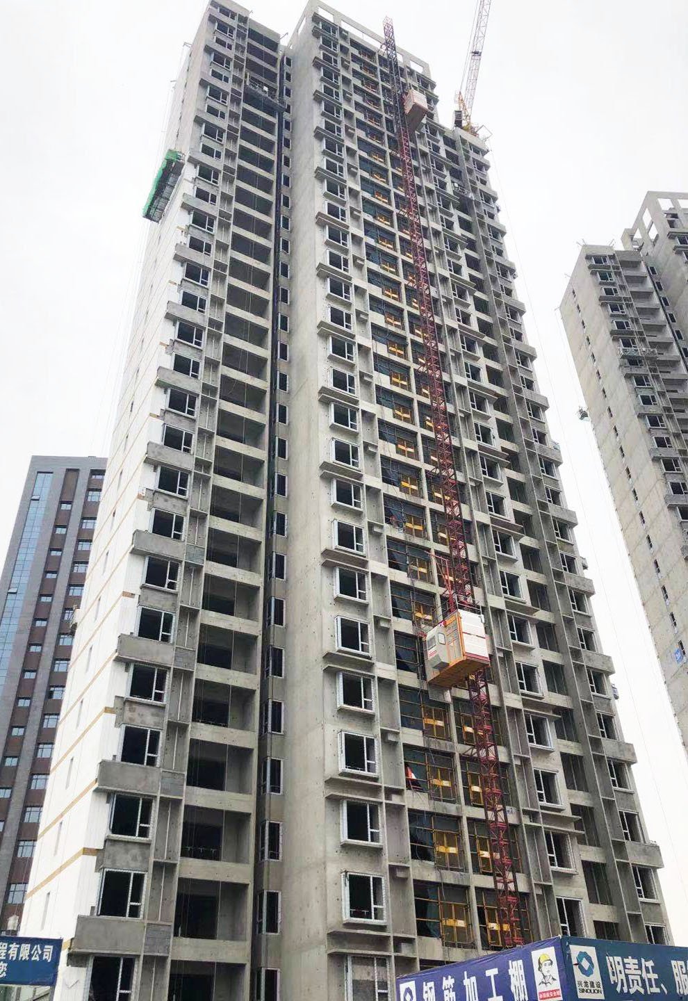 1#樓:外墻保溫與真石漆施工完成30%。