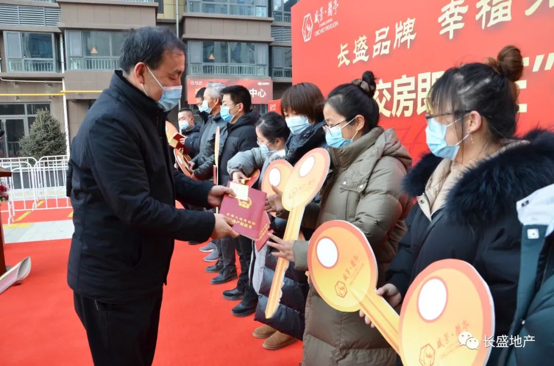 12月31日,榆林市長盛集團房地產開發有限公司在盛景蘭亭小區舉行“交房即交證”儀式。榆林市不動產登記中心主任李東堂,榆林市住房和城鄉建設局房地產市場管理科科長李瑞平,公司總經理徐遼飛、副總經理劉世斌,9名業主代表及榆林市住房和城鄉建設局、榆林市不動產登記中心有關科室負責人參加儀式。
