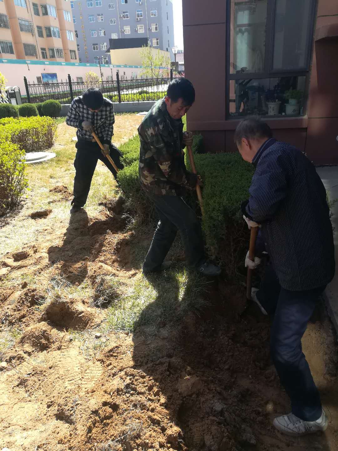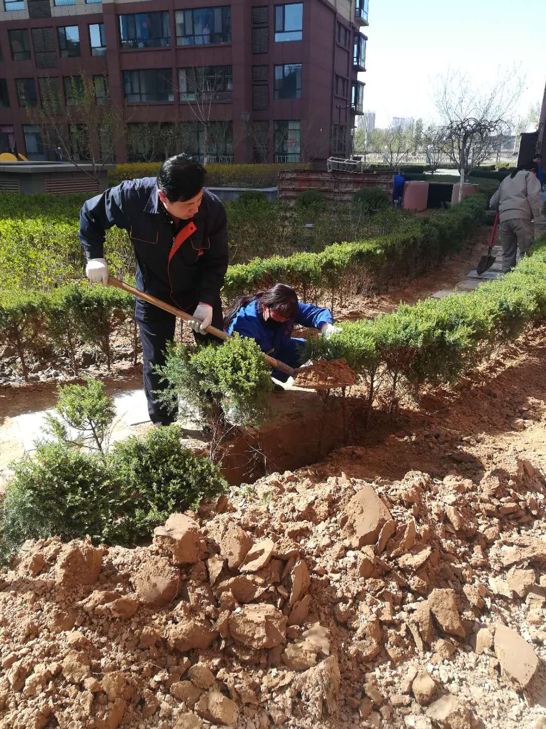 此次活動物業(yè)全員配合,分工明確,大家個個態(tài)度積極、熱情高漲,興致勃勃。在活動現(xiàn)場,大家有的扶苗,有的培土,各個環(huán)節(jié)銜接有序,配合默契,真正是勁往一處使、汗往一處流,充分發(fā)揚了團結(jié)、互助、友愛的精神。