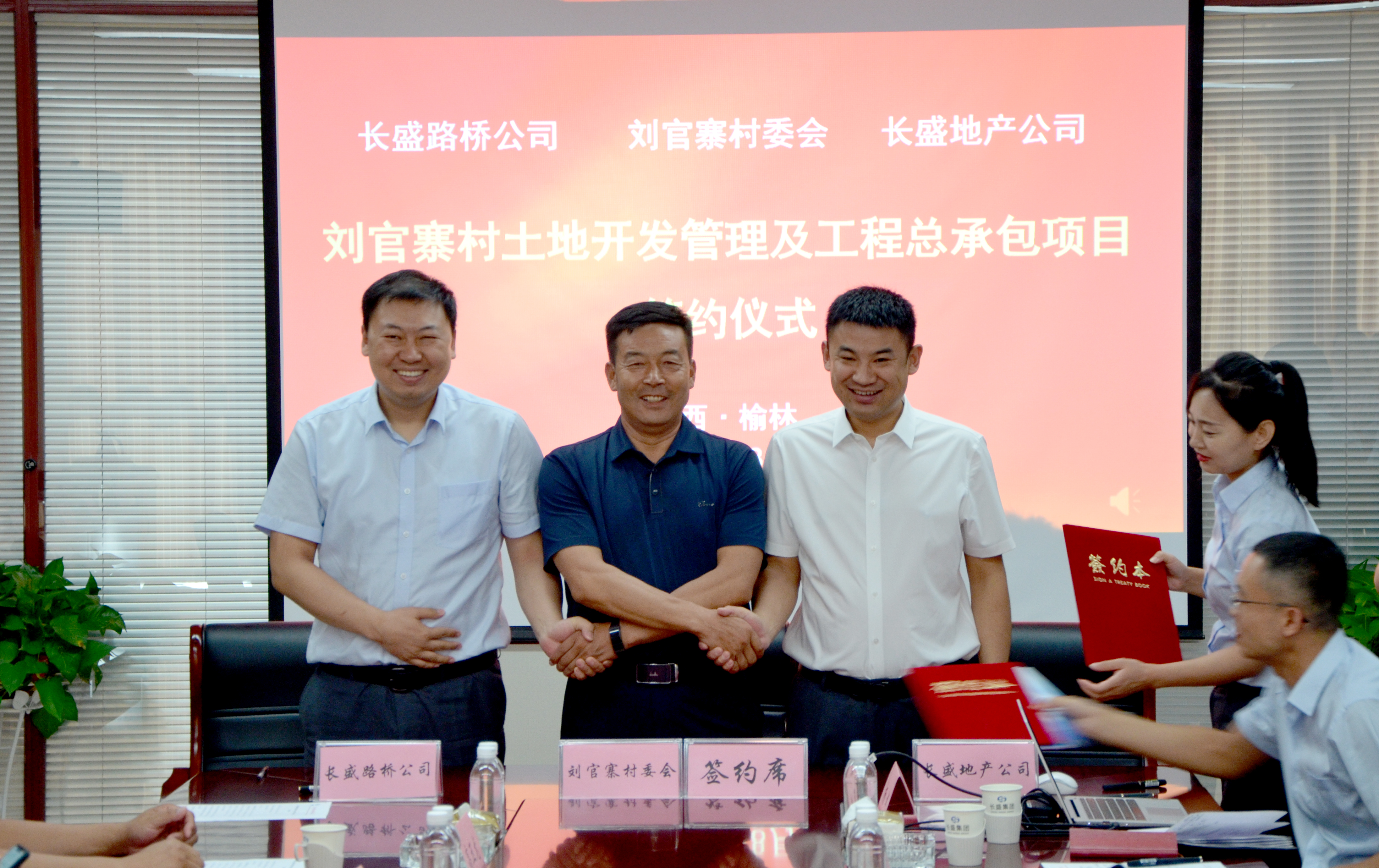8月3日下午,榆林市長盛集團路橋工程建設有限公司、榆林市長盛集團房地產開發有限公司與榆林市榆陽區朝陽路街道劉官寨村村民委員會舉行“土地開發管理及工程總承包”協議簽約儀式。長盛集團董事長徐團林、董事長助理黨世明、總經理徐永飛、副總經理黃建梅、副總經理徐遼飛;榆陽區朝陽路街道辦事處主任段彥飛、司法所所長楊璐;劉官寨村村民委員會書記陳忠華、副主任陳振林、副書記高玉龍、監委會主任林建軍、婦女主任王換秀、村兩委會成員代表和公司部分管理人員出席了簽約儀式。