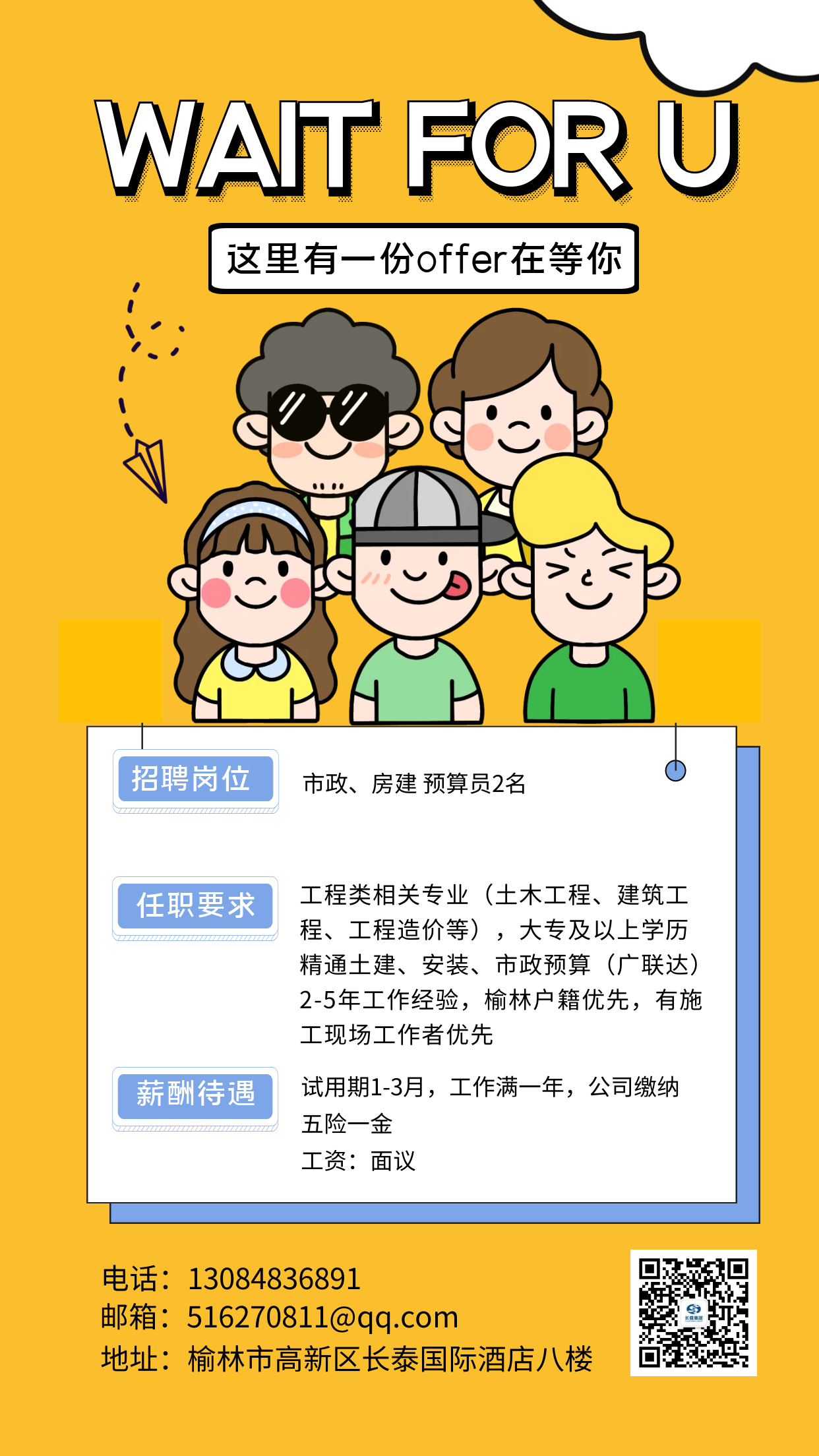工作地點:榆林市高新區長泰國際酒店八樓